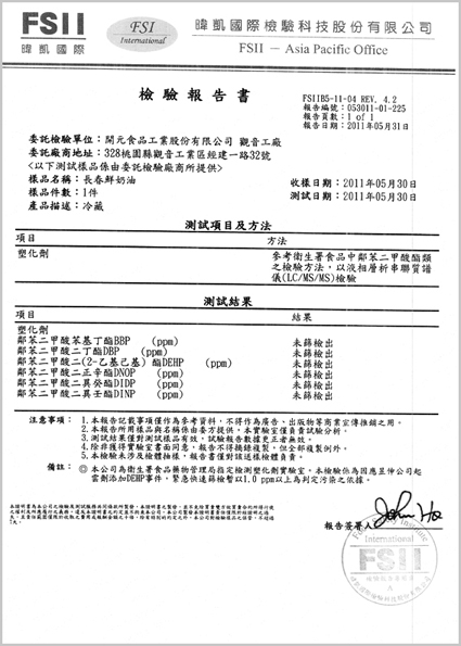 2.通過檢驗報告(林鳳營鮮奶)